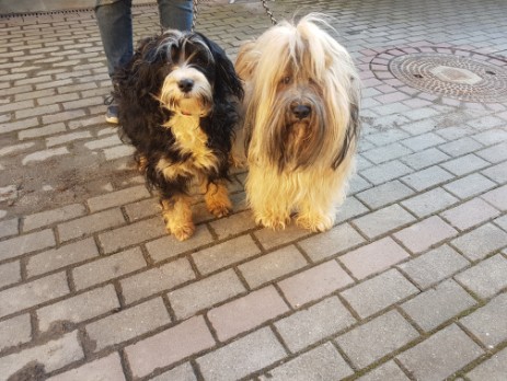 Date im Februar 2022 mit TIARA AUS DEM RODACHTAL, Züchter Fam. Eberhardt, Schwarzenbach am Wald, Bayern - Tibet Terrier Deckrüde in Thüringen, Balou, from the "little people" in Saalburg-Ebersdorf Thüringen